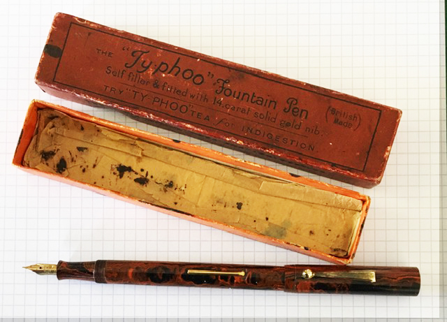 3. I think Fleet might be the best candidate for the manufacturer of the pen in the photo, c1927/8. The pens illustrated on the cards are much later, probably mid 1930s, and definitely made by someone else. Unlike John Bull, who had their own manufacturing facility for a time at least, Typhoo would have just gone to whoever gave them the best quote, so their pens would have come from several different makers over the years.