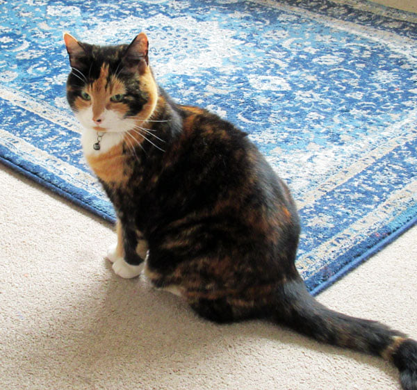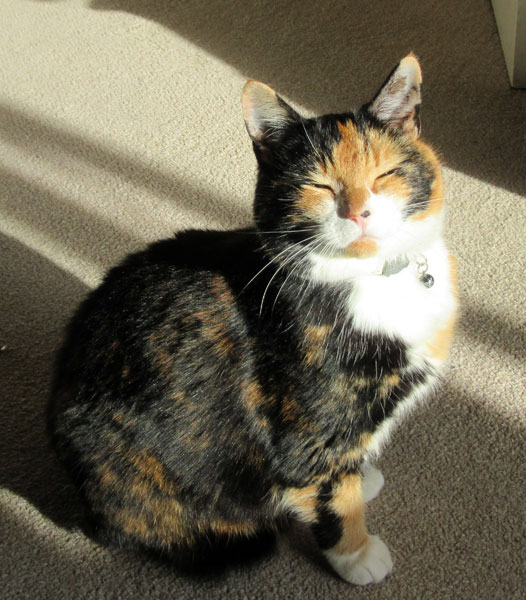 Over the years we have known many cats: several tabbies and calicos and a couple of Siamese. They’ve all been lovely and characters but Tuppence stood out. For such a little cat she had a huge fund of affection. She knew she was loved and she loved us right back. She was the friend of every child who passed though the street. Fearless where people were concerned, she believed every door should be open to her – and most were. She wasn’t a lap cat but would be content to sit on the arm of the chair and be companionable.