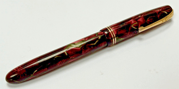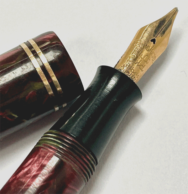 When I was buying and selling fountain pens, first in eBay and later from my own sales site (now closed) I avoided these colourful post-war post-war Burnhams. I was right to do so; many are subject to casein rot and the photographs weren’t always good enough to tell which were the good ones..