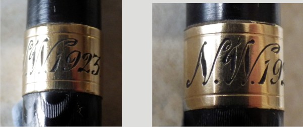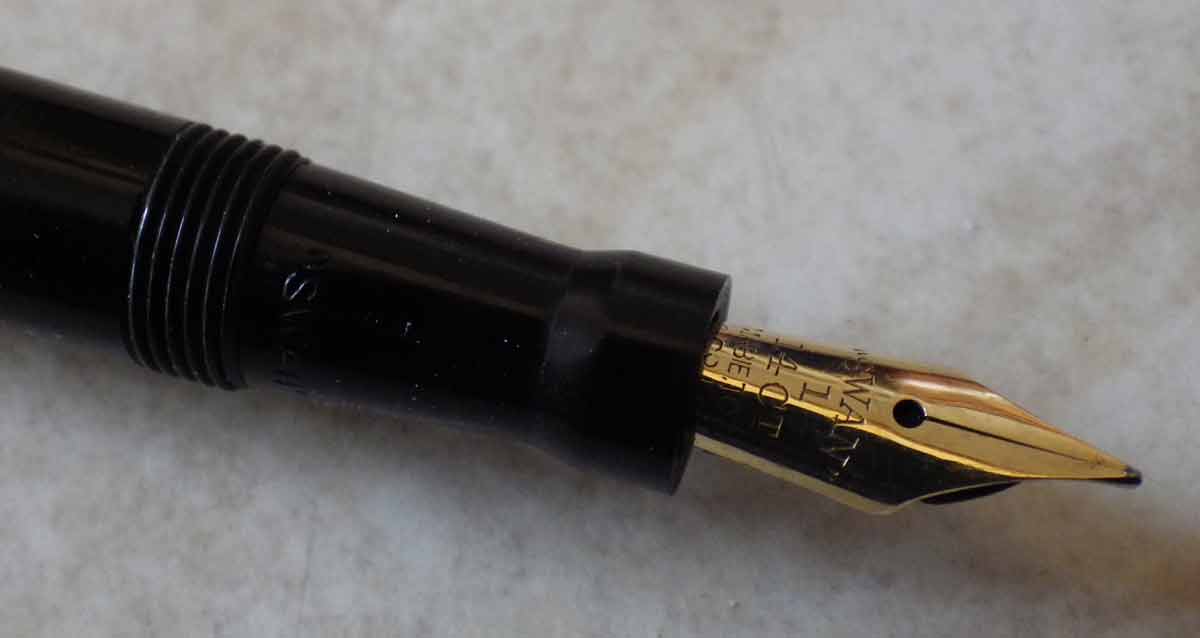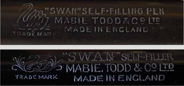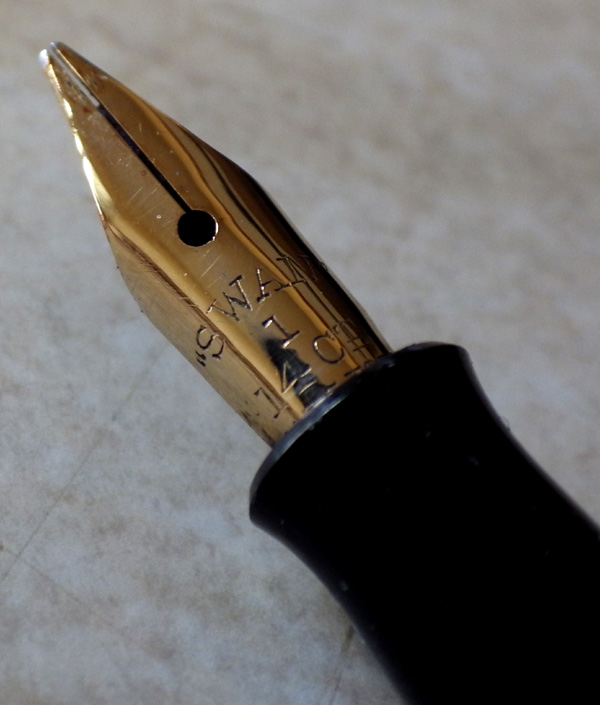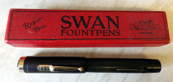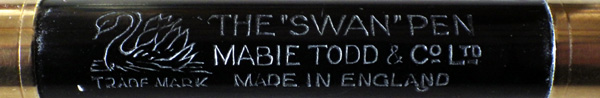 Lambrou reckons that you can date pens by the Swan image. For myself, with the exception of the WWII central Swan, I can’t see it. As is the case here, I’ve seen the same model of pen with different Swan imprints. I suspect that a number of different Swan stamps were in use most of the time.