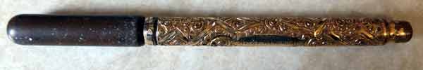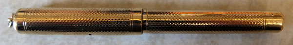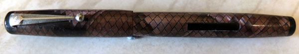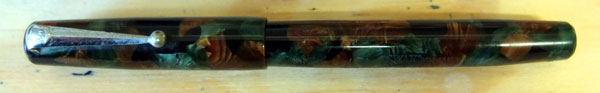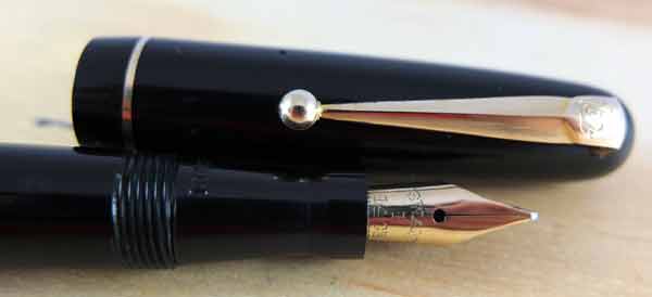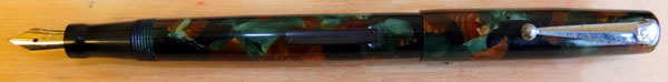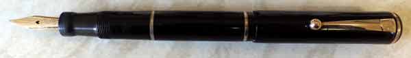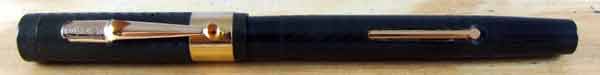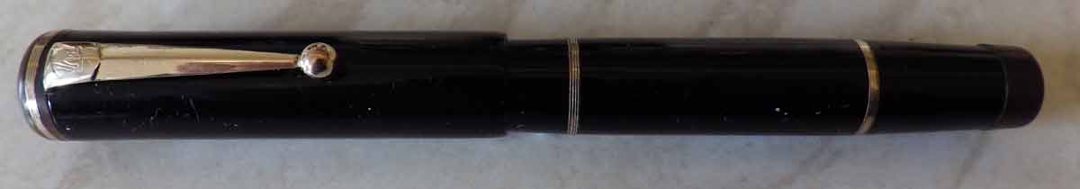 The shape of this pen suggests that it’s not quite the very first of the Leverless pens; new designs came along in 1935 and I think this is one of them. It’s comparatively thick and it’s a centimeter or two shorter than most Leverlesses of the period.