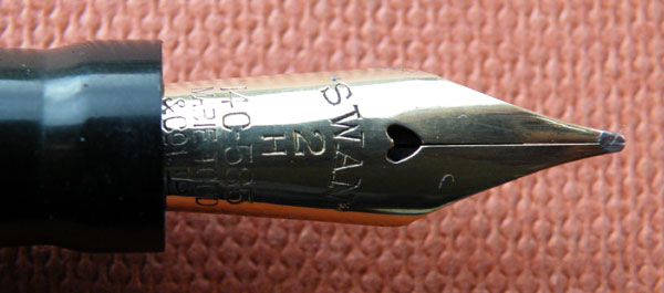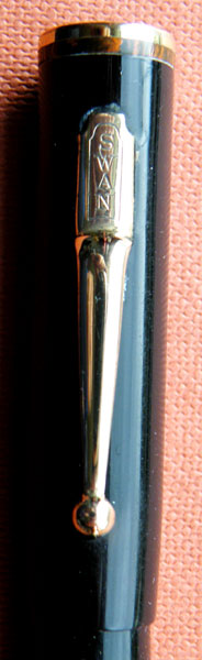 Someone will correct me if they’ve found different examples, but all Swans and indeed all the other eyedroppers I’ve worked on are conventionally threaded. In other words, the section will unscrew from the barrel with an anti-clockwise turn. Expect the threaded part to be quite long Sometimes these are reluctant to move because they are stuck with old ink. Gentle dry heat will loosen them up; remember that these are black hard rubber pens – soaking is not advised.*