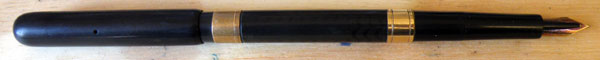 Many of you, I know, will regard disassembly of an eyedropper as one of the easier tasks, but it can be a puzzle for someone who hasn’t done it before. I’m using a Swan 1500 for illustration but the method remains the same for many earlier Swan eyedroppers, and also most ones made by other manufacturers.