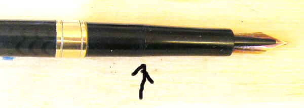 One of the commonest problems on well-made pens like Swans is that it can be very hard to see where the pen opens. The join between barrel and section can be so fine that it’s virtually invisible. Use strong light and magnification if necessary. I’ve shown here with my crudely drawn black arrow where the faintly-visible join is on the 1500. It will be in a similar position on most eyedroppers.