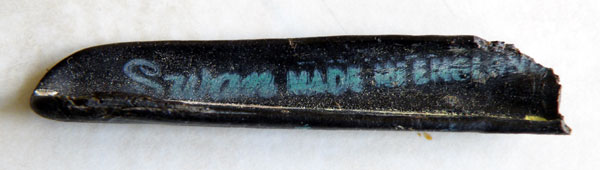 *Opinions vary about soaking but in my experience water, whether hot or cold, is best kept away from the visible exterior of black hard rubber pens. Some rubber, and particularly rubber as old as the material in these eyedroppers, has often already deteriorated through oxidization, though it isn’t visible. Any contact with water will make it fade at once. Then you’ll have to rub the part down to return it to black and it probably won’t match the rest of the pen. You may even resort to one of the several potions and processes you’ll find on the internet, none of which I can recommend. Better to avoid the necessity in the first place.