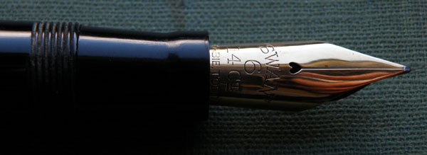 Provided the appropriate feed was matched to the nib, Swan’s ladder feed was (and remains, of course) superior to the other types of feed around at the time and it continued to hold that lead for many years. Properly adjusted, broad, stub and even flexible Swan nibs don’t suffer from ink starvation as so many of their contemporaries do. Even into the forties and fifties when Sheaffer and Waterman developed deeply-cut multi-finned feeds to control ink flow, Swan stuck with their tried and tested ladder feed which remained the equal of of these innovations.