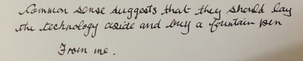 Yep! It’s a crack. About the size of the Grand Canyon. I can’t believe the seller didn’t see that, and yet he was happy to take my £48.90 and £2.60 postage! I’ve contacted him and he’s going to refund me in full including return postage, so that’s not so bad. Some sellers blow up the minute you mention that there’s a fault, and the claim becomes very confrontational. I’ve never had an occasion where I didn’t get my money back for a damaged pen but I’ve had a few threats. I take those with a pinch of salt and the husband growls, “Bring it on!” from his armchair where he sits sharpening his machete and flipping through Classic Arms & Militaria magazine.