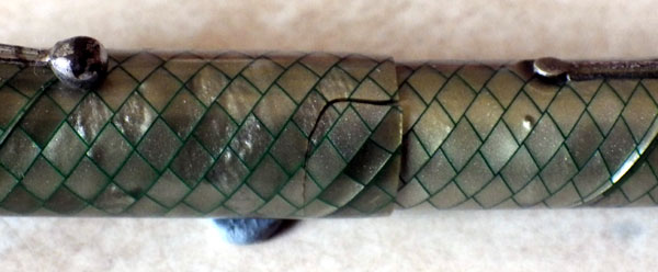 Beautiful pen, isn’t it? Green lizard – or is it snake? I’m never sure unless it’s numbered and this one isn’t. It’s unrestored. I can brighten up the metalwork. But wait… What’s that?