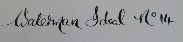 The main reason for their continuing popularity today is the nib. The No 14 nib is noticeably bigger than 12, but otherwise it conforms to the same “Ideal” design. These are wonderful nibs. This particular one is very fine, perhaps an EF, with superb flexibility and snappy return.