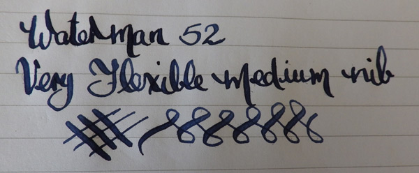 As is so often the case with Waterman 52s, the high point of the pen is the nib. It’s the most flexible nib I have had in quite a while and it snaps back to medium the instant the pressure is released – not that it takes very much pressure to produce a double-broad line.