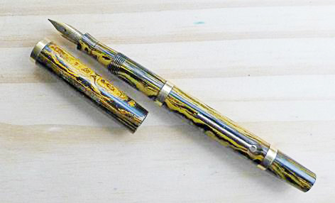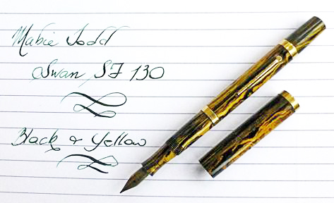 The flat-top SF130 range appeared in 1929. The yellow and black version is very rare indeed. As Mabie Todd did not assign different numbers to the different colours of hard rubber, I can only assume that this pen shares the /61 signifier with all the other HR pens.