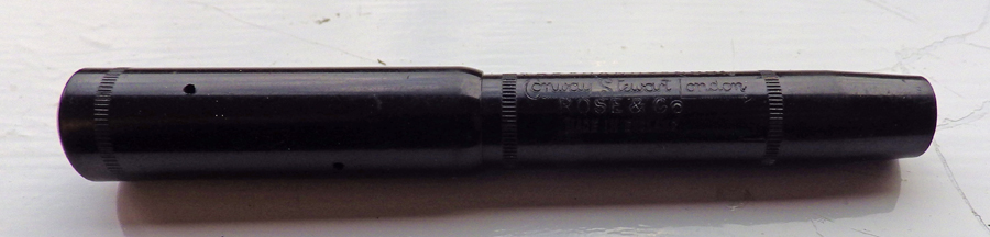 There is a language to the design of pens and with experience you can read it. Straight sided barrel and cap, bought-in lever, threading at the end of the barrel to take a posted cap: all this adds up to a recognisable type of pen. Nobody knows who made them. It might have been Mentmore, Wyvern, Langs or just about anyone else. It might even have been a pen manufacturing company whose name never occurs in any context. These pens were cheaply mass produced as giveaways or inducements to buy for commercial companies that had nothing else to do with fountain pens. Often they were given away by newspapers in return for postage and the mastheads of a week’s worth of daily papers.