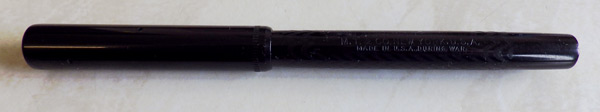 It’s a nice example of allied cooperation, and the words “made in USA during war” make the pen a little special, particularly from the point of view of a collector. Otherwise, it’s as simple and straightforward as a pen can be. It’s not quite two straight tubes; the barrel is slightly tapered at both ends. The section has impressively deeply cut threads which keep the ink were it’s meant to be – inside the barrel.